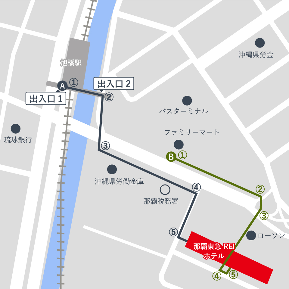 A 오키나와 도시 모노레일 아사히바시역에서 호텔까지의 경로