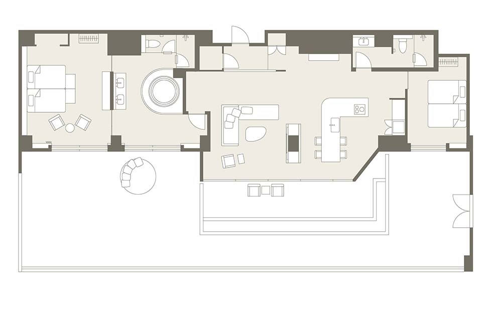 방의 배치는 어디까지나 일례입니다. 면적이나 가구 배치, 비품 등은 객실에 따라 다르므로 미리 양해 바랍니다.