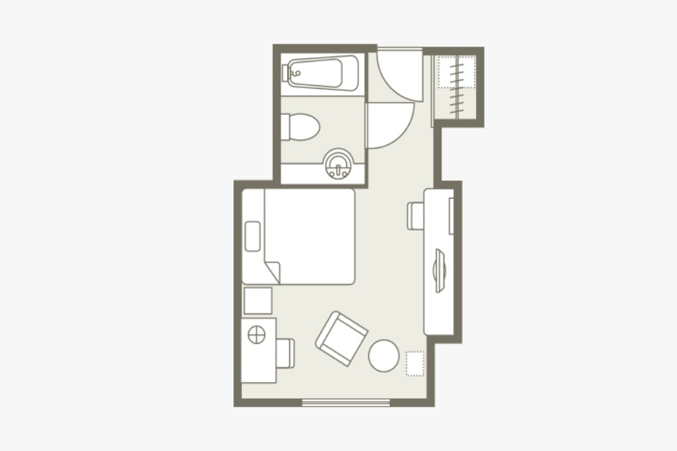 방의 배치는 어디까지나 일례입니다. 면적이나 가구 배치, 비품 등은 객실에 따라 다르므로 미리 양해 바랍니다.