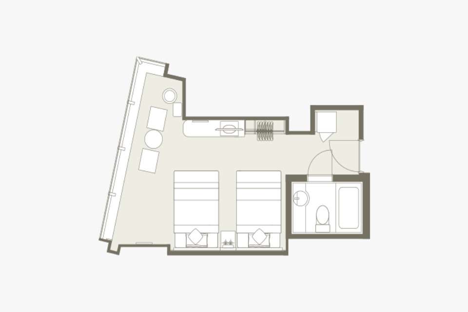 방의 배치는 어디까지나 일례입니다. 면적이나 가구 배치, 비품 등은 객실에 따라 다르므로 미리 양해 바랍니다.