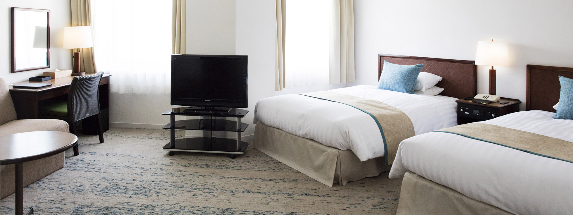방의 배치는 어디까지나 일례입니다. 면적이나 가구 배치, 비품 등은 객실에 따라 다르므로 미리 양해 바랍니다.