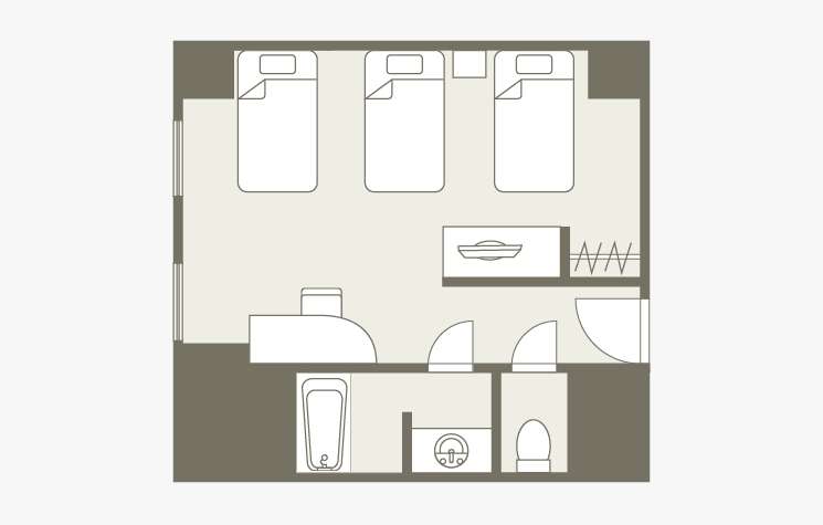 お部屋の間取りはあくまで一例です。面積や家具の配置、備品などはお部屋により異なりますので、あらかじめご了承ください。