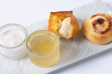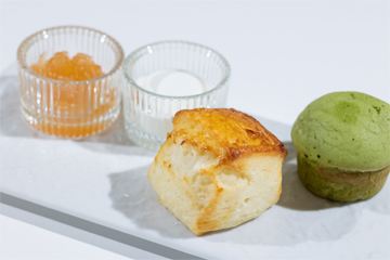 さっくりしたスコーンにはリンゴのコンフィチュールとクロテッドクリームを添えて。