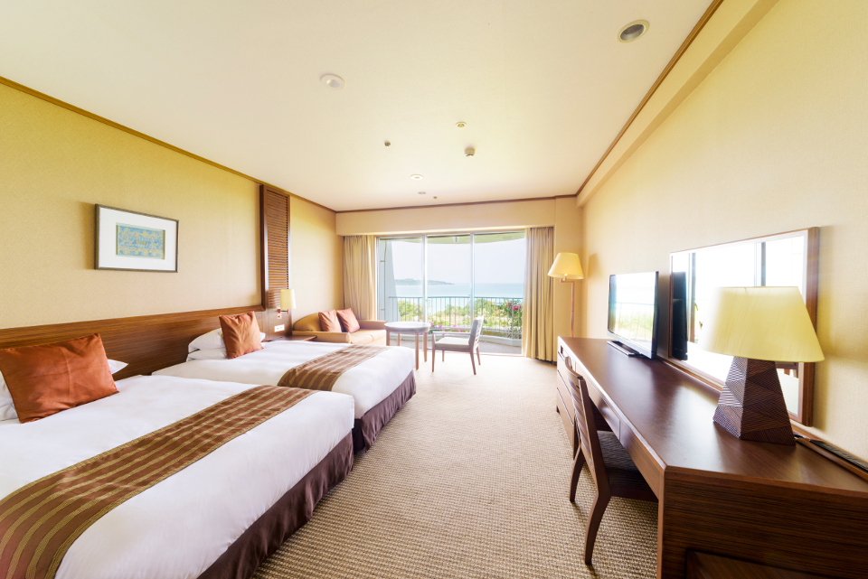 お子さまと一緒に安心して滞在できるようデザインされたお部屋です。 オーシャンウイングには畳間付きの和洋室と、広々としたファミリー洋室。 コーラルウイングには海が眺められるスーぺリアツインルームをご用意しております。