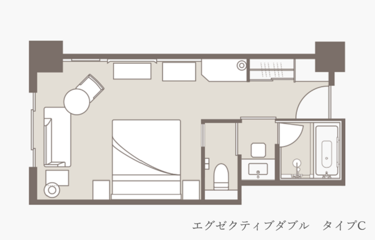 お部屋の間取りはあくまで一例です。面積や家具の配置、備品などはお部屋により異なりますので、あらかじめご了承ください。