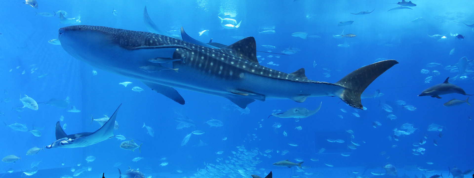 沖縄の美しい海を再現した巨大水槽や、世界最大の魚であるジンベエザメをはじめとする多種多様な海の生物を展示。