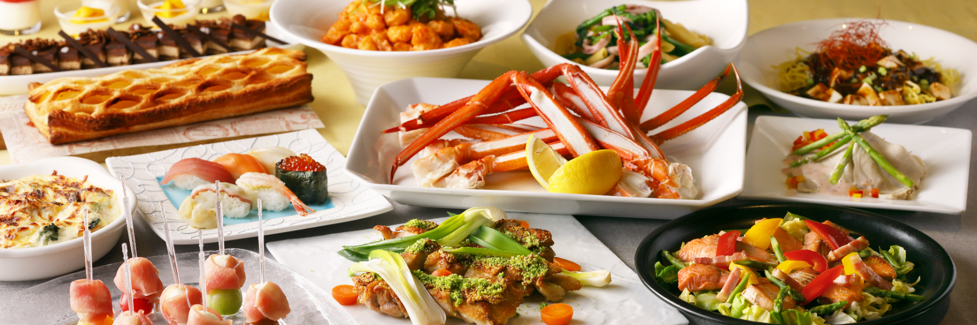 白老産和牛ステーキを焼きたてでご提供!他にも、グラナパナーダで仕上げるズワイガニのトマトクリームパスタや、焼きたてクレープの実演、自分だけの一杯を楽しむ丼ぶりコーナーなどに加え、お子さまメニューも多数ご用意いたします。GWの特別な夜に、ご家族皆さまで北海道の美味を楽しみながら、贅沢な時間をお過ごしください。