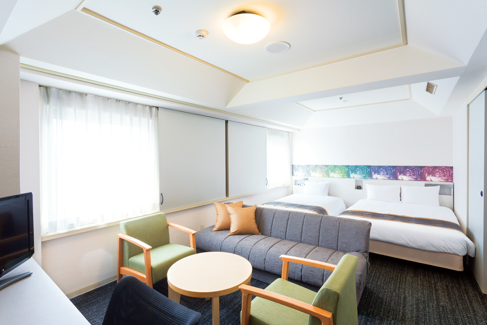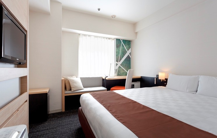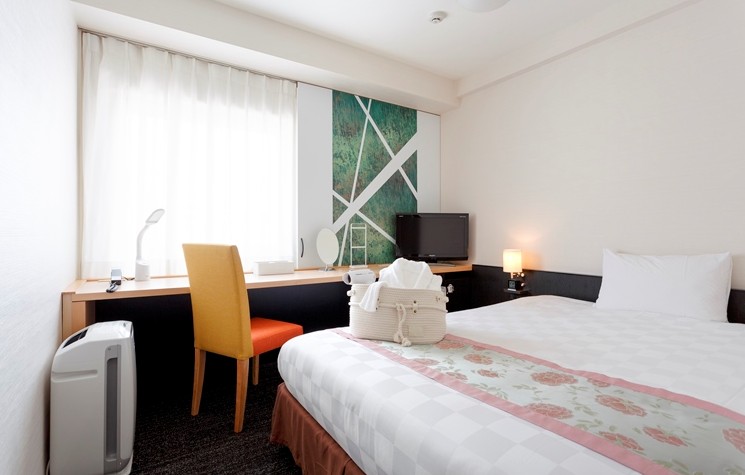 客室内は白を基調に清潔感のあるコンパクトで機能的なお部屋です。ベットは140cm幅でシングルでもゆったりサイズ。