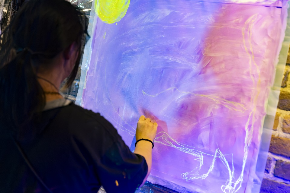 浄化DJ×波動画家として活動しているAiMii(宮田 彩)によるアートプロデュースで、多彩なアーティストがアートで会場を魅了します。ライブペイントでは、KOHARUによるボディペイント体験やネオンアートなどがお楽しみいただけるほか、未来を担うアーティストとしてこれからが楽しみな現役多摩美術大学生も参加するなど、あなたの知らないアートの世界へと誘います。