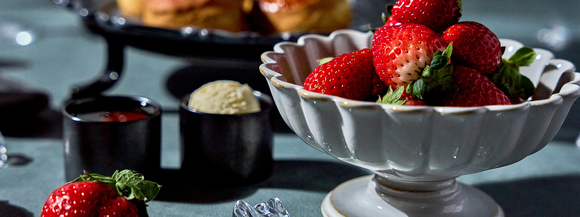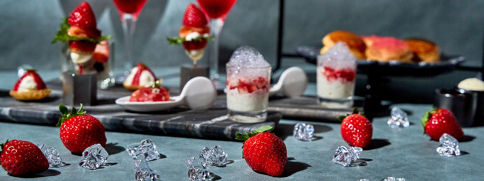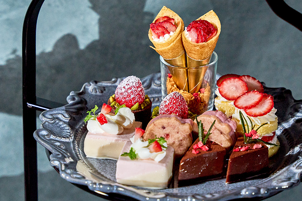 今年の春のアフタヌーンティーは、渋谷の感度高い街並みにふさわしい、スタイリッシュでファッショナブルな苺のアフタヌーンティーをお届けします。甘酸っぱいフレッシュ苺の食べ比べを主役に、クレープやクッキー、タルトなど様々なスタイルで楽しめるプティフール、苺のアクセントを効かせ、塩味や食材それぞれの食感とのコントラストを堪能できるセイボリーなどが並びます。苺の多彩な味わいのほか、商品一つ一つのフォルムや見た目にもこだわって仕上げました。春の訪れにふさわしい苺のシロップとソーダの透明感あるウェルカムドリンク、TWG Teaとともに渋谷らしい都会的なアフタヌーンティー体験をお楽しみください。