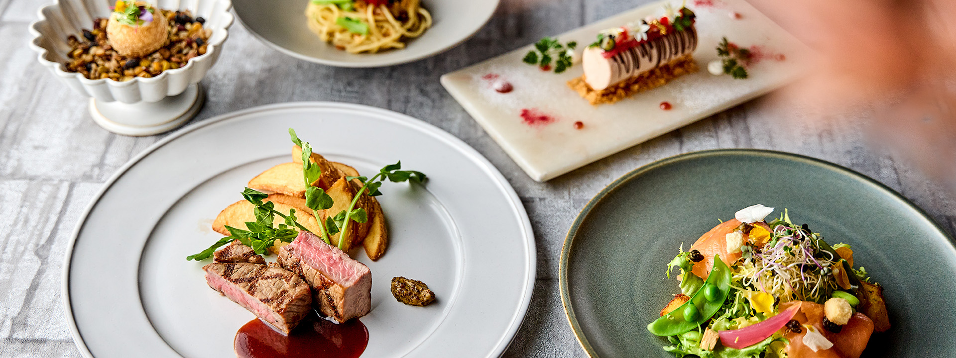 歓送迎会のシーズンにぴったりな春のコースをご用意!春の食材で彩った全5品のトレントコース、お肉をさまざまなスタイルで楽しむにはぴったりのシェアしながら食べるミートシェアコース。シーンに合わせてトレントの味を楽しんでみては。