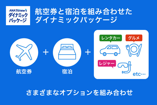 ダイナミックパッケージは、飛行機・新幹線・JRやホテル、オプションなどを自由に組み合わせて作るオリジナルのフリープランです。