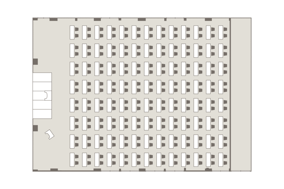 重厚な雰囲気を醸しだすホワイエから、ひとつ奥まった場所に位置する「すずらん」は、コンパクトで上品なバンケットルームです。各種セミナーや各種団体の幹事会、レセプションやセミナーでの分科会会場として、「こまくさ」とともにご利用いただくこともできます。同じ階にあるメインバンケット「信濃」のレセプション事務局としても最適です。