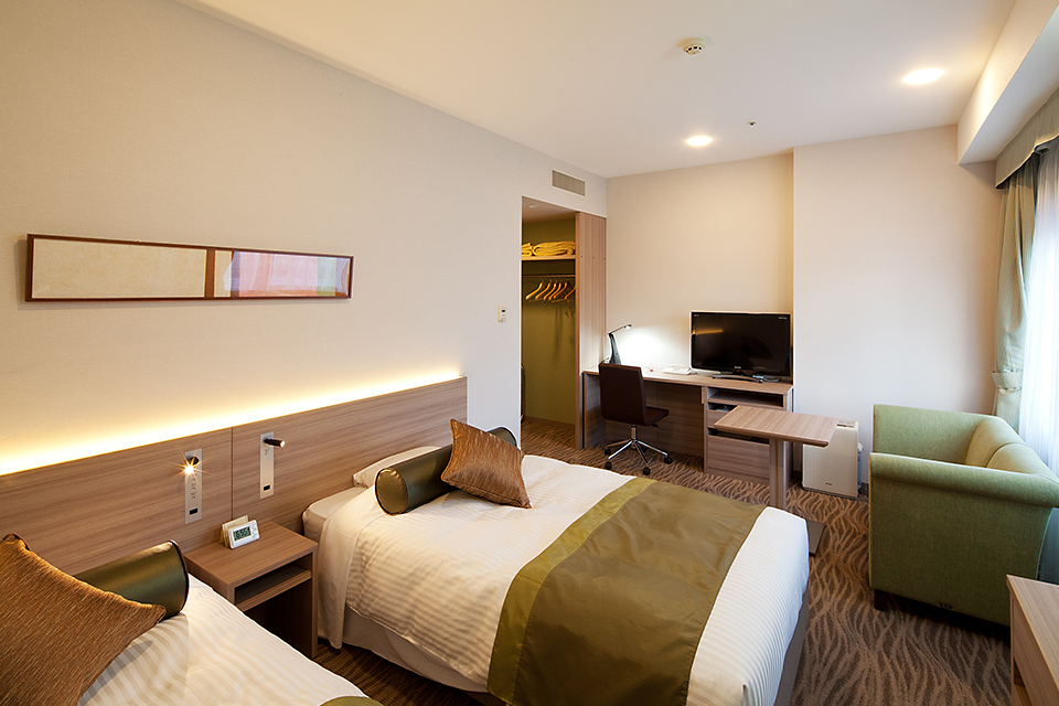 シンプルで明るく機能的なお部屋は、ビジネスユースにも対応。温かみのある色調の客室で、ごゆっくりお寛ぎください。