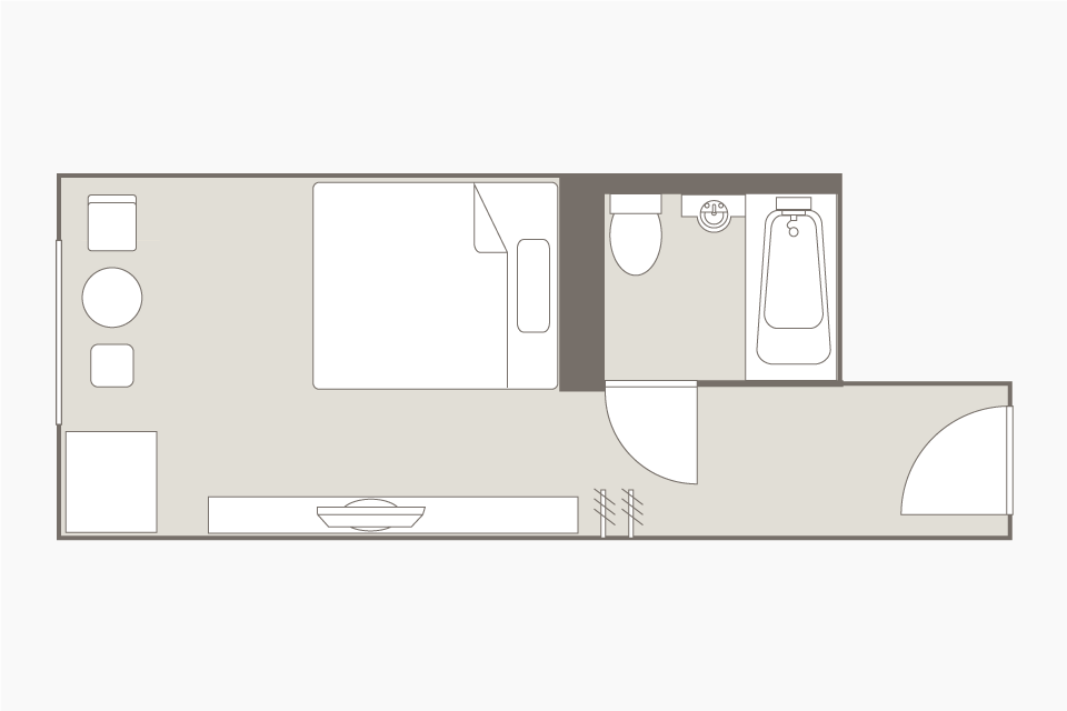 お部屋の間取りはあくまで一例です。面積や家具の配置、備品などはお部屋により異なりますので、あらかじめご了承ください。