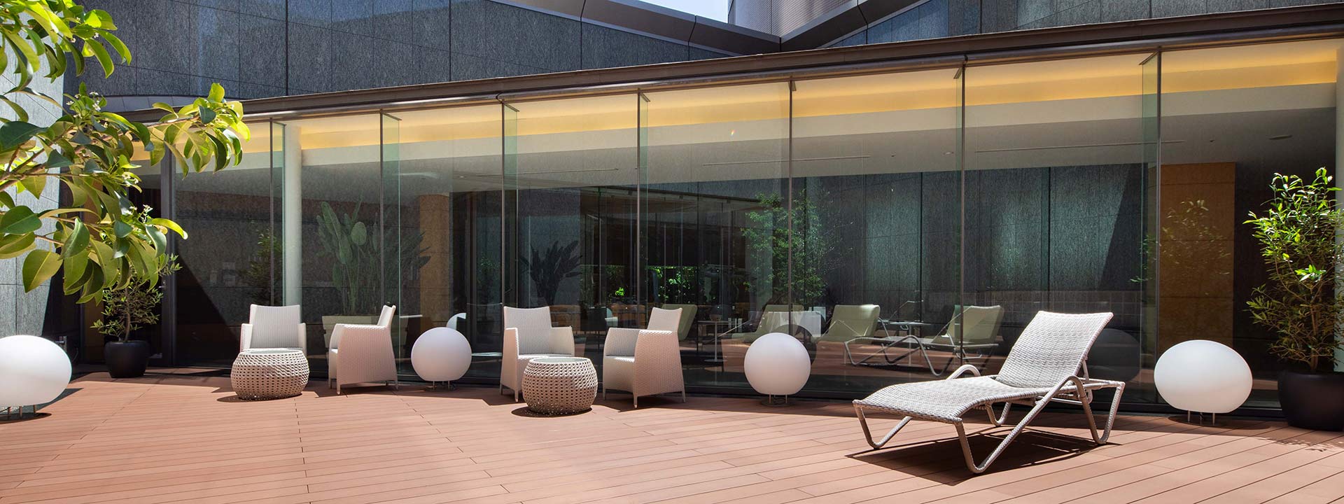 晴天时,可以一边沐浴着明亮的阳光和舒适的风,一边享受瑜伽的室外木质甲板。可以在私人教练的指导下做符合自己风格的瑜伽。