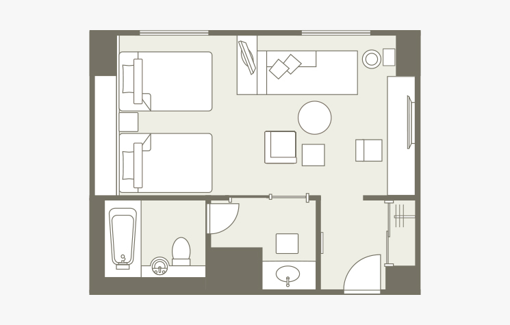 房间的布局只是一个例子。面积和家具的配置、备品等根据房间而不同,请事先了解。