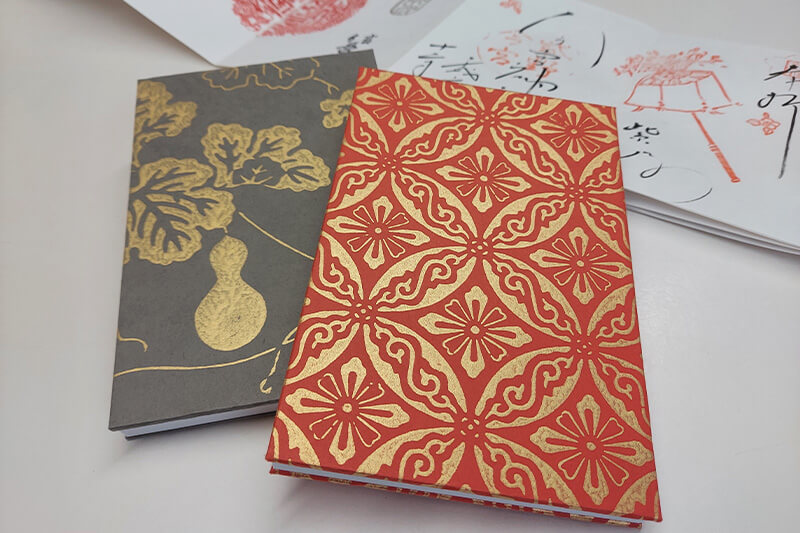 是完成世界上独一无二的朱印帐的体验。在介绍了工匠们长年传承下来的装订技法和对材料的考究之后,您可以选择自己喜欢的和纸和封面图案,在他们的细心指导下进行制作。在体验折叠和纸、装订正文、完成封面等一系列工序的同时,完成一本与旅行的回忆相称的高品味的书。