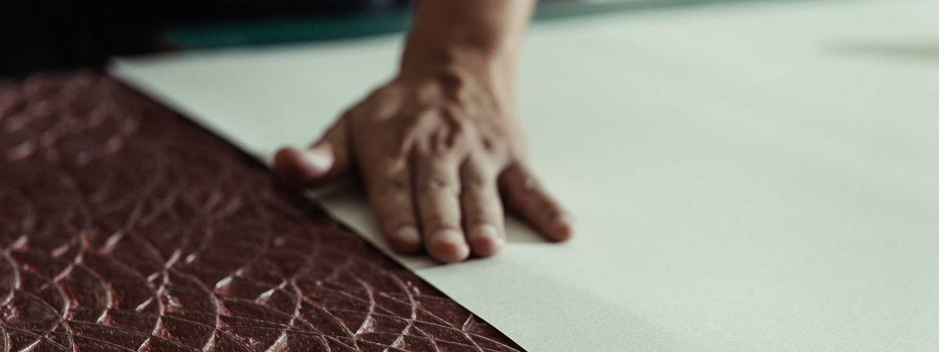 简单地表达将神社佛阁和茶室装饰得很美丽的京唐纸的话,就是像版画的一种一样的东西,使用的是用朴木手工雕刻的自古以来流传下来的传统花纹的版木。这是一种在表面贴上被称为基拉胡粉的颜料,在日本纸或鸟子纸上配合图案,一张一张用手掌描绘出花纹的传统手法。丸二至今仍持续使用天保时代的木版,纹样、颜料、道具都守护着自古以来的传统。
