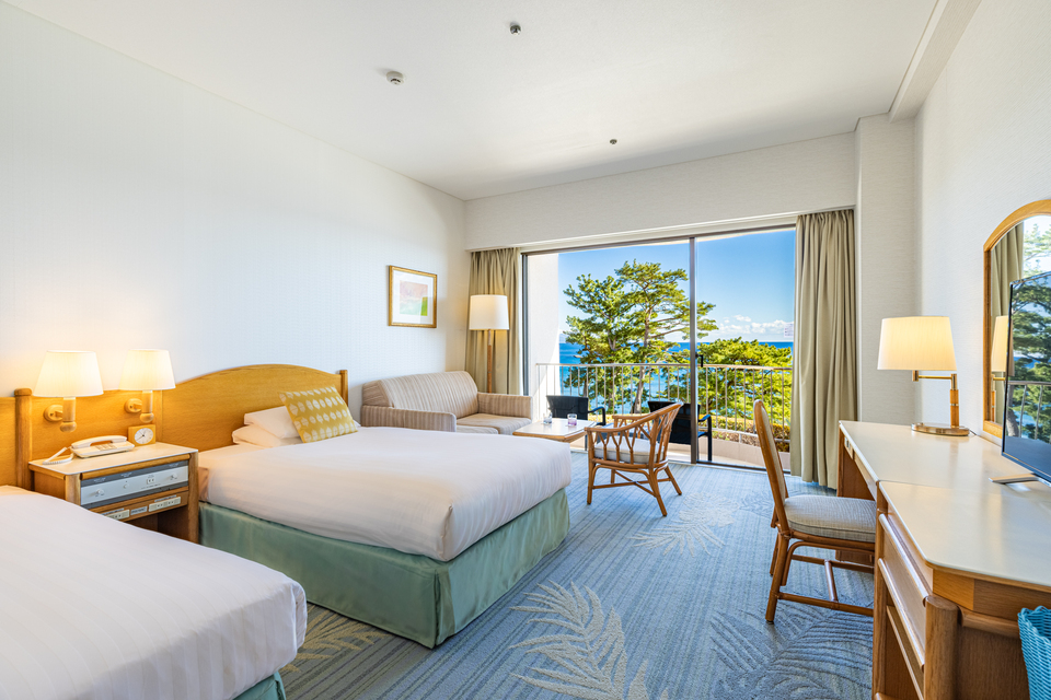 这是约32平方米的宽敞双床房。