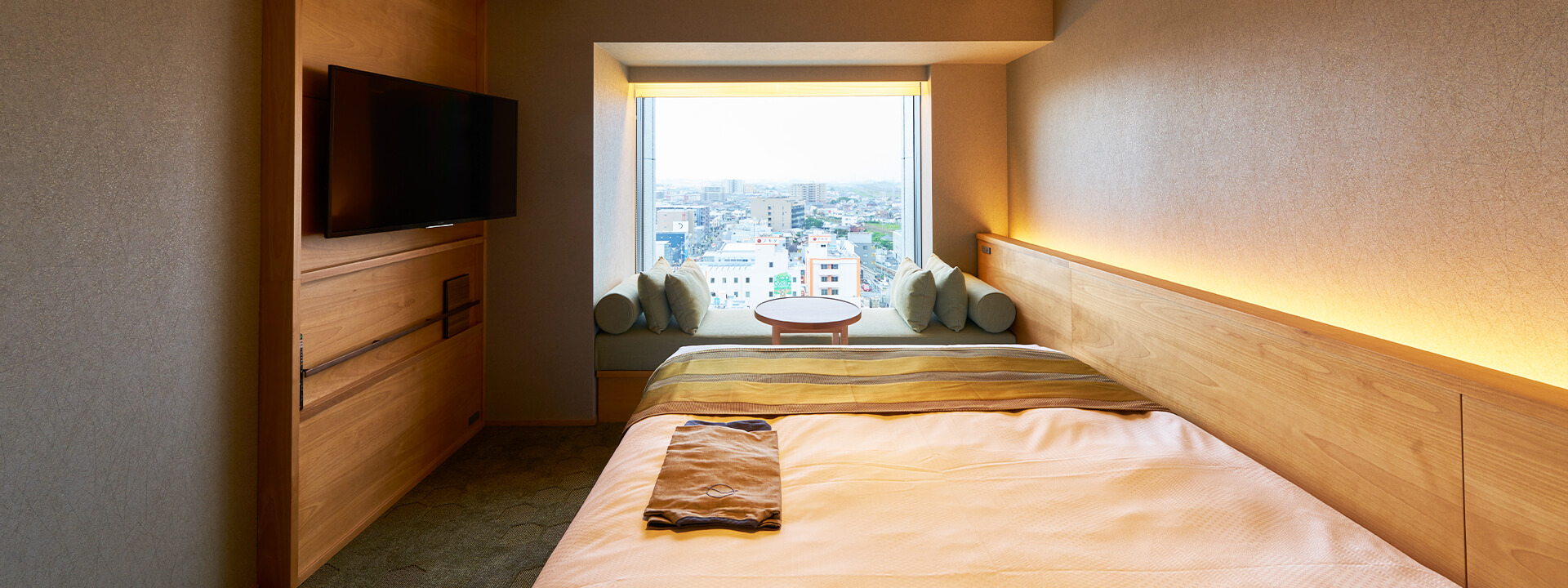 高级拐角双人间是朝西的房间。不面对富士山