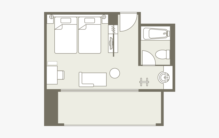房间的布局只是一个例子。面积和家具的配置、备品等根据房间而不同,请事先了解。