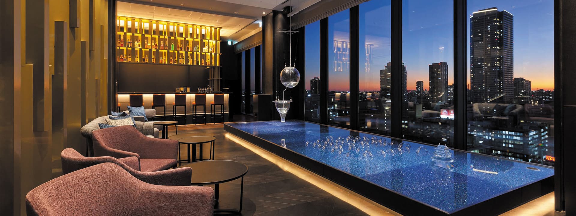 映照着水都大阪的水盘,天满切子的灯光摇曳的充满戏剧性的成人空间。