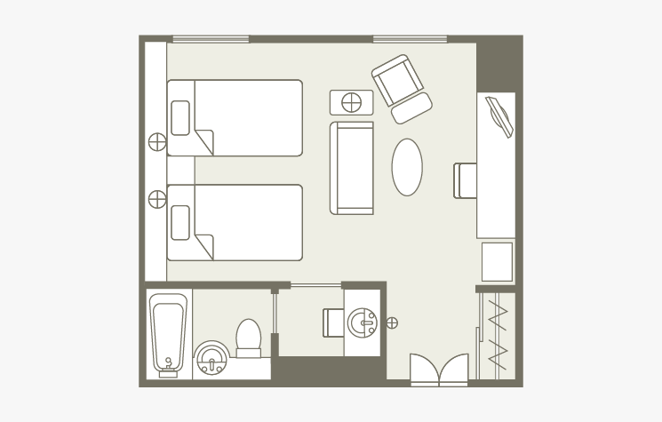 房间的布局只是一个例子。面积和家具的配置、备品等根据房间而不同,请事先了解。