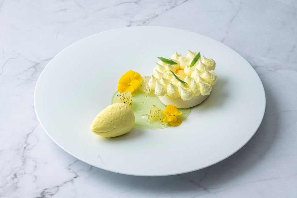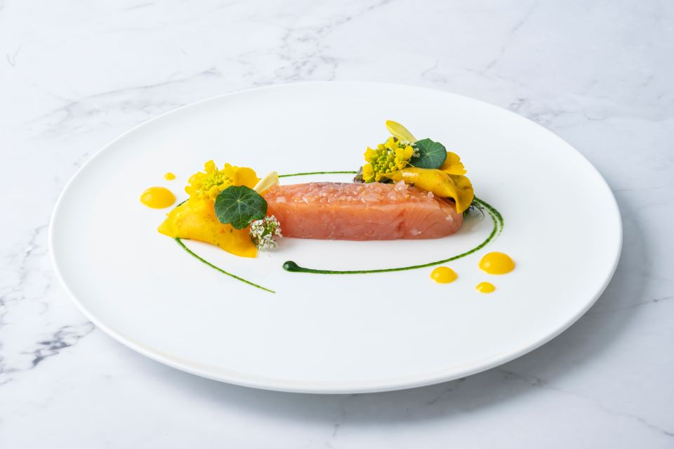香煎鮟鱇鱼的白菜和含羞草色的蛞蝓风味