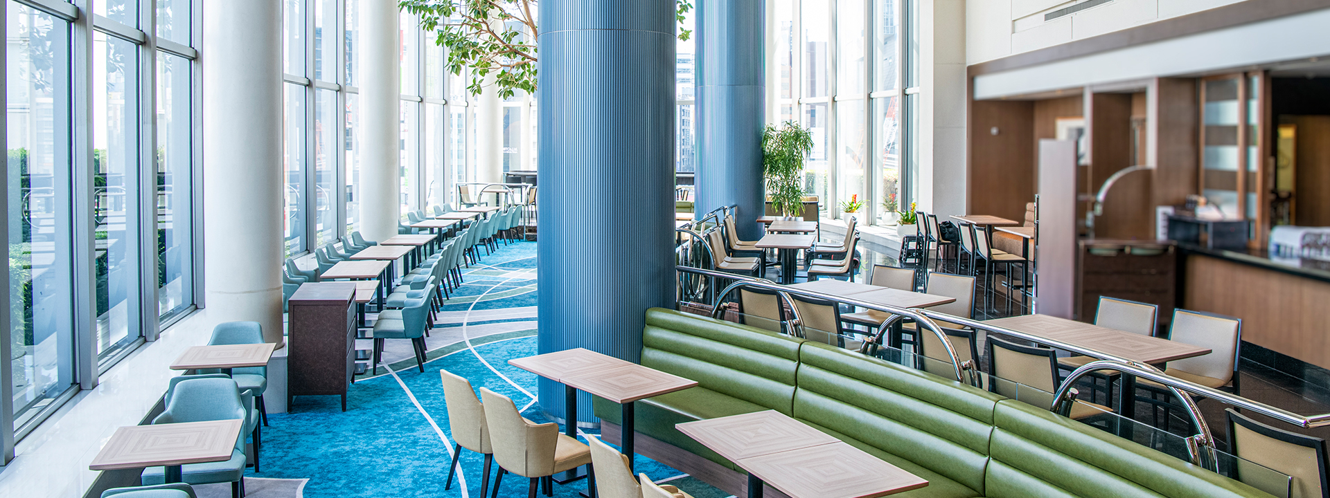 “Estasion”在西班牙语中是“车站”的意思。正如其名,位于车站正上方,面对涩谷全向十字路口,是涩谷唯一的酒店休息室。在天花板高约8米的充满开放感的空间中,度过舒适的片刻时光。还准备了可以打包的酒店糕点师特制的时令甜点。