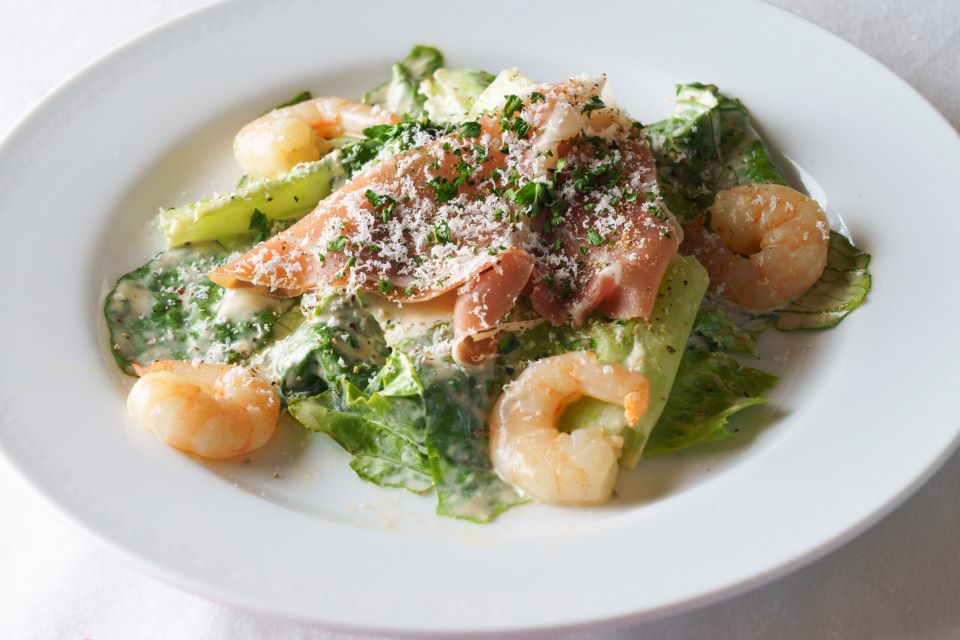 ◎凯撒沙拉在会场装盘,再由服务人员在座位上削好芝士。