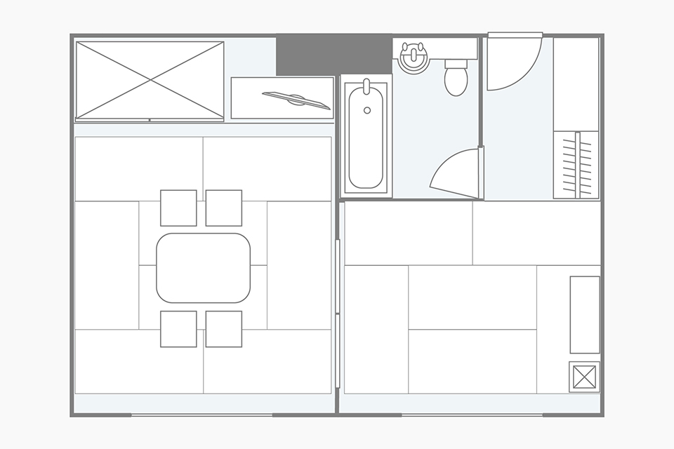 房间的布局只是一个例子。面积和家具的配置、备品等根据房间而不同,请事先了解。