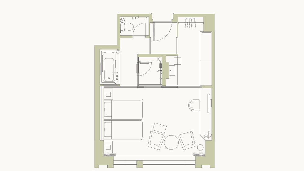 房間的佈局只是一個例子。面積和家具的配置、備品等根據房間而不同,請事先了解。
