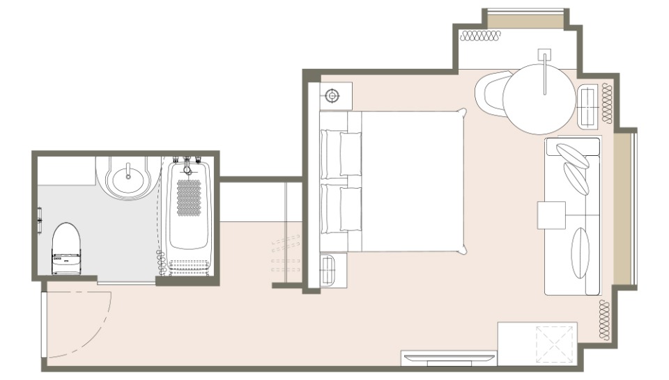 房間的佈局只是一個例子。面積和家具的配置、備品等根據房間而不同,請事先了解。