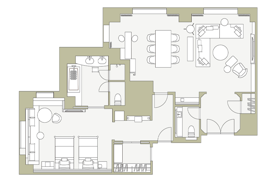房間的佈局只是一個例子。面積和家具的配置、備品等根據房間而不同,請事先了解。