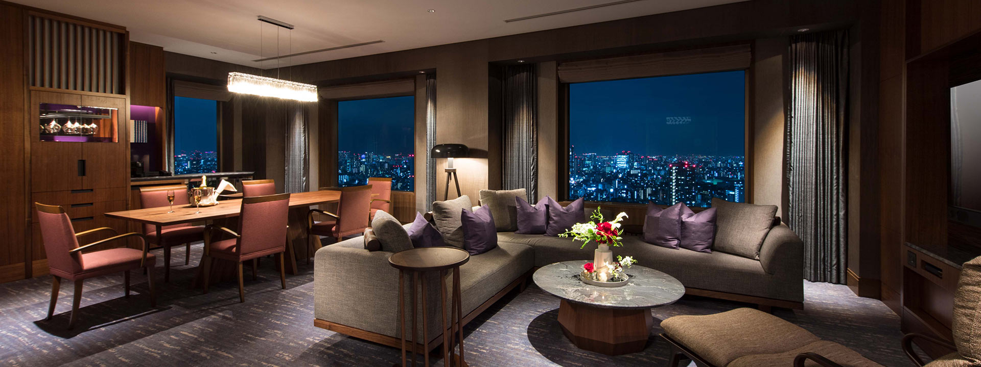 裡面有展示藝術家作品的架子,窗邊的吧台可以欣賞到東京的景色,臥室裡有一張內置沙發,你可以一邊喝著一杯酒一邊放鬆。享受優雅的飯店住宿體驗,在兼具功能性和設計感的套房中欣賞日本藝術之美。