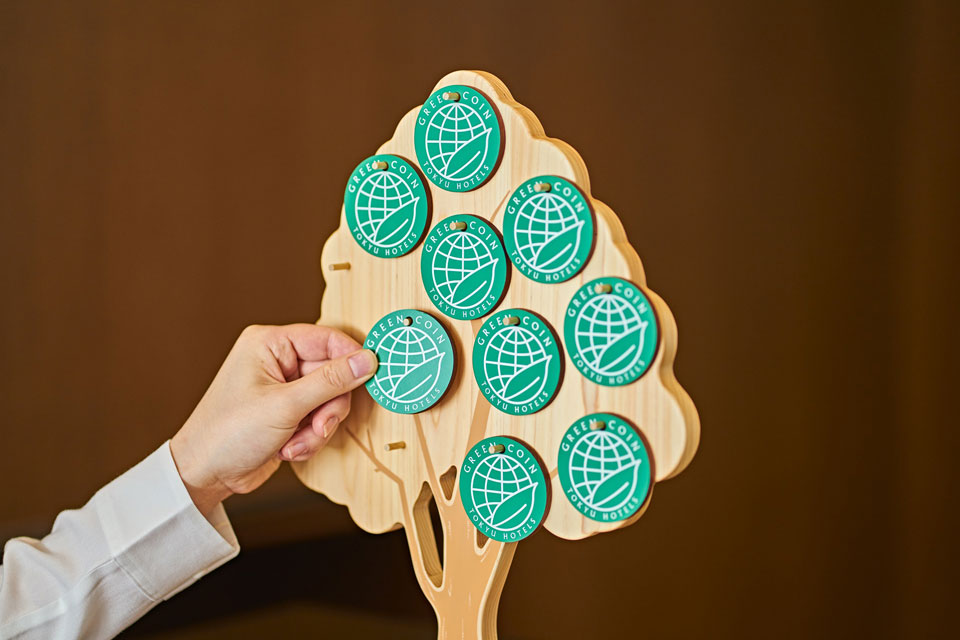 自 2001 年以來,TOKYU HOTELS及度假村一直在其營運的酒店實施「綠色硬幣」系統,以進行環境保護活動。 「綠幣」系統允許在入住期間不使用牙刷、刮鬍刀等便利設施的客人將提供的綠幣帶到前台,這些綠幣將用作環境保護活動的基金。另外,如果連續入住的客人理解並配合不更換床單、毛巾等布草,我們將提供“綠卡”制度,將布草費的一部分作為資金,我們還將提供“綠卡”制度。友好住宿旨在透過每三天清潔和更換床單來減少用於清潔的資源量,並且一部分清潔和床單費用用於類似的基金。所有這些資金均透過 OISCA 捐贈給位於 Tambayama 村的TOKYU HOTELS Green Coin Forest 和兒童森林計畫 (*)。