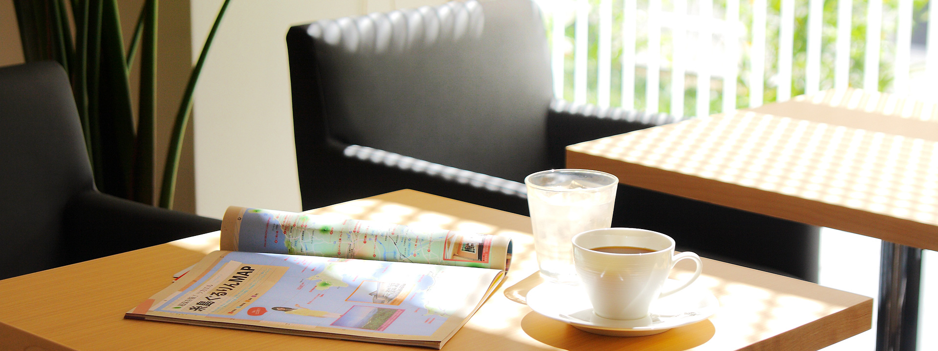 住宿客人在逗留期間可自由使用的“賓客休息室”除提供早餐空間外,還準備了大型顯示器和各種報紙、雜誌。此外,還配備了無線LAN網路連接環境,可作為放松、收集信息的場所使用。