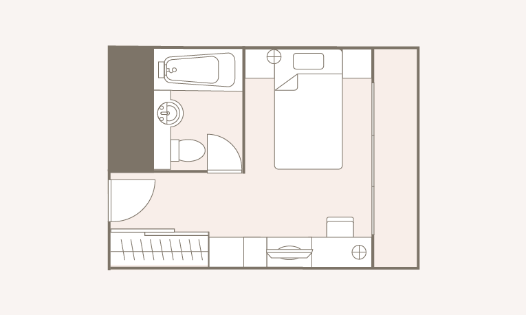 房間的佈局只是一個例子。面積和家具的配置、備品等根據房間而不同,請事先了解。