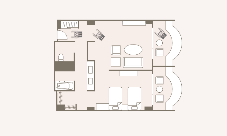 房間的佈局只是一個例子。面積和家具的配置、備品等根據房間而不同,請事先了解。