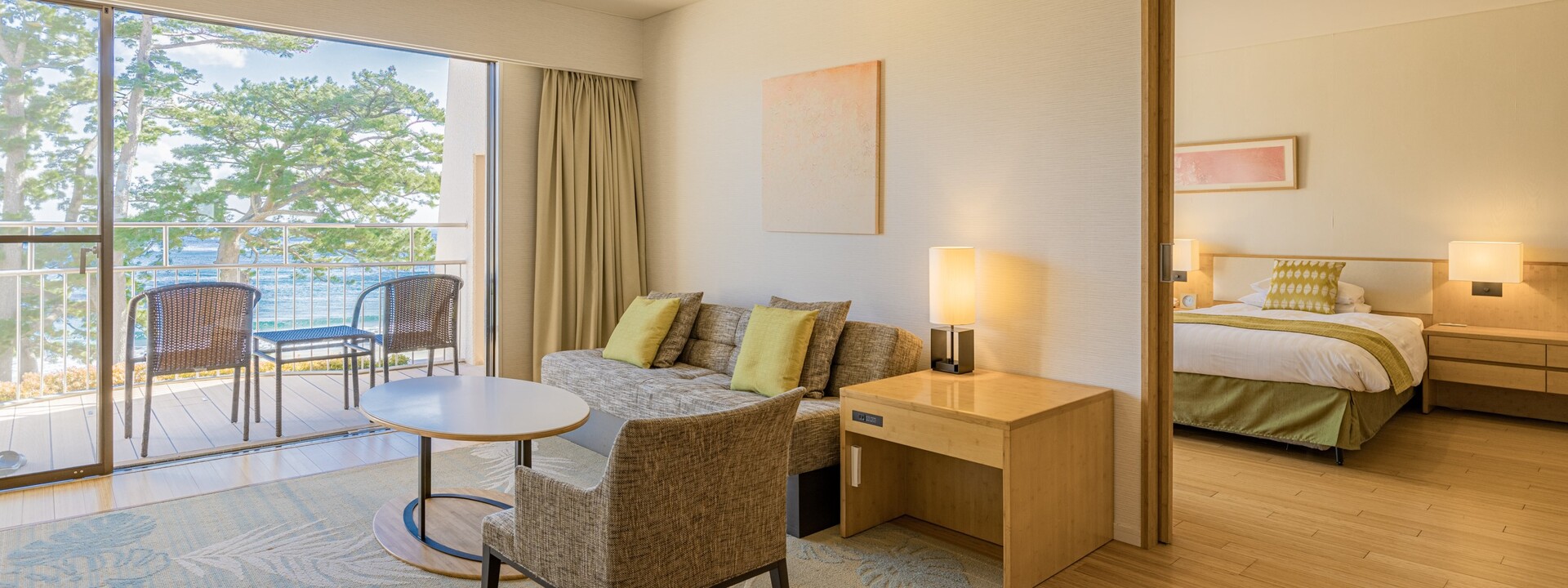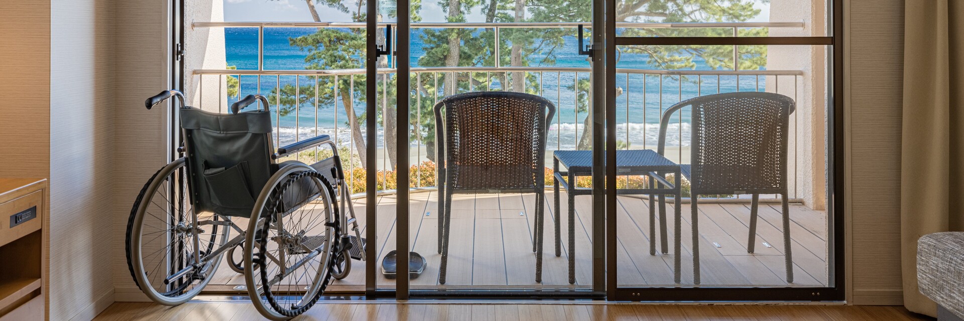 為了讓所有的客人都能舒適地度過,地板、浴室、起居室一側的陽臺等都沒有臺階。請從海景陽臺,度過感受海風的片刻時光。