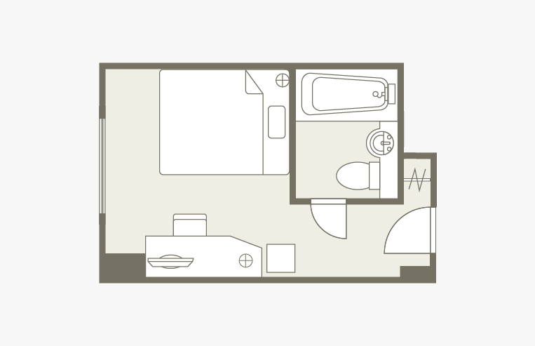 房間的佈局只是一個例子。面積和家具的配置、備品等根據房間而不同,請事先了解。