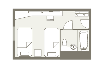 房間的佈局只是一個例子。面積和家具的配置、備品等根據房間而不同,請事先了解。
