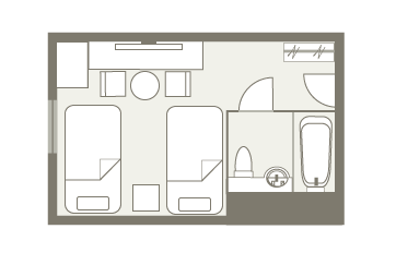 房間的佈局只是一個例子。面積和家具的配置、備品等根據房間而不同,請事先了解。