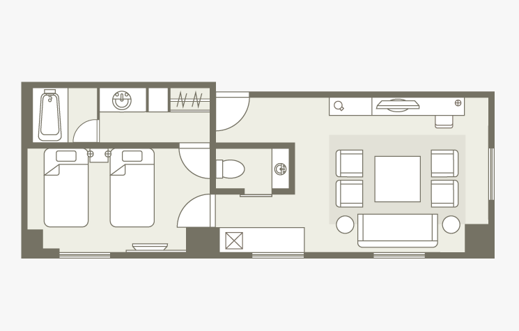 房間的佈局只是一個例子。面積和家具的配置、備品等根據房間而不同,請事先了解。