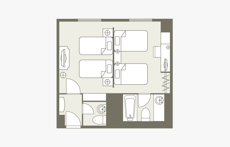 房間的佈局只是一個例子。面積和家具的配置、備品等根據房間而不同,請事先了解。