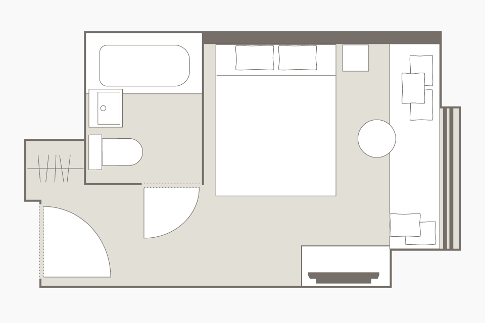 房間的佈局只是一個例子。面積和家具的配置、備品等根據房間而不同,請事先了解。