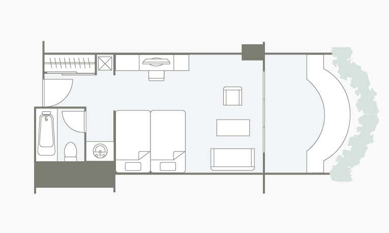 房間的佈局只是一個例子。面積和家具的配置、備品等根據房間而不同,請事先了解。