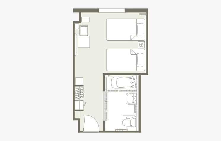 房間的佈局只是一個例子。面積和家具的配置、備品等根據房間而不同,請事先了解。