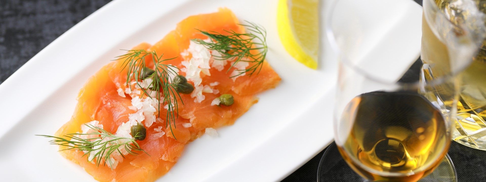 凝縮的三文魚美味與高雅的熏香,將以威士忌為首的各式酒杯襯托得優雅。